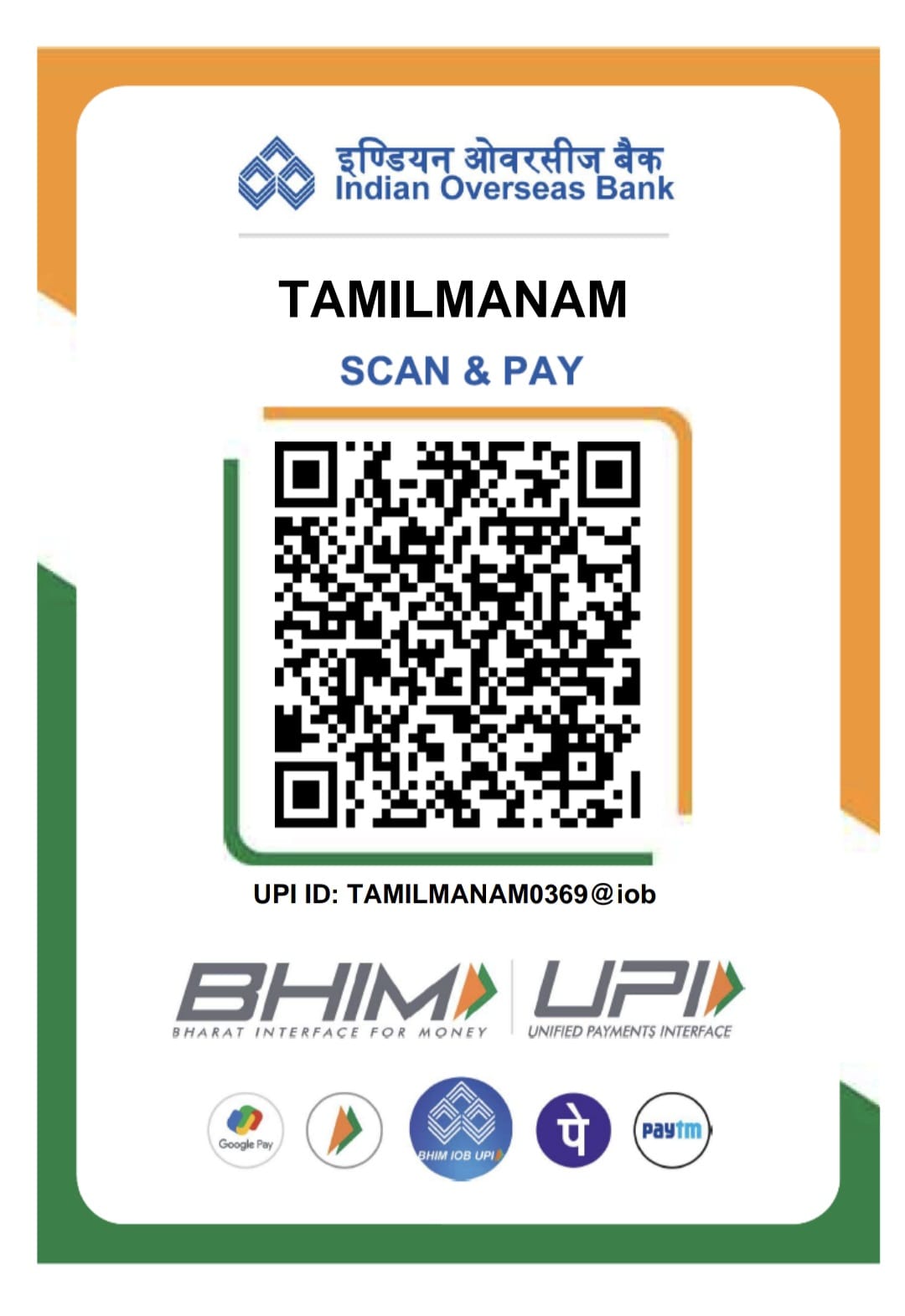 TAMILMANAM0369@iob - GPay / PhonePe:
